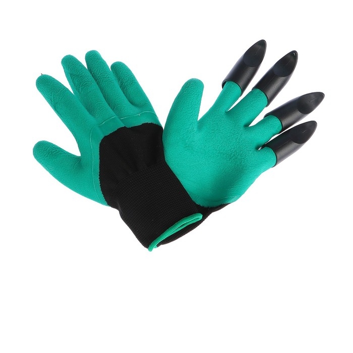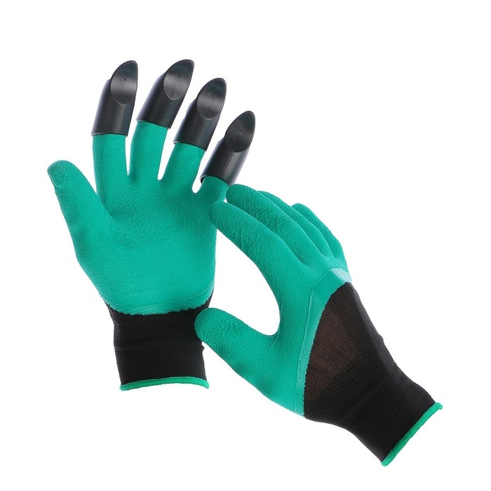 Перчатки садовые, нейлоновые «Землеройки», с латексной пропиткой, с когтями, зелёные, Greengo