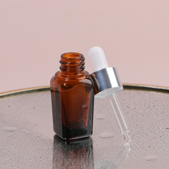 Бутылочка стеклянная для хранения с пипеткой, 10 мл, цвет коричневый/белый