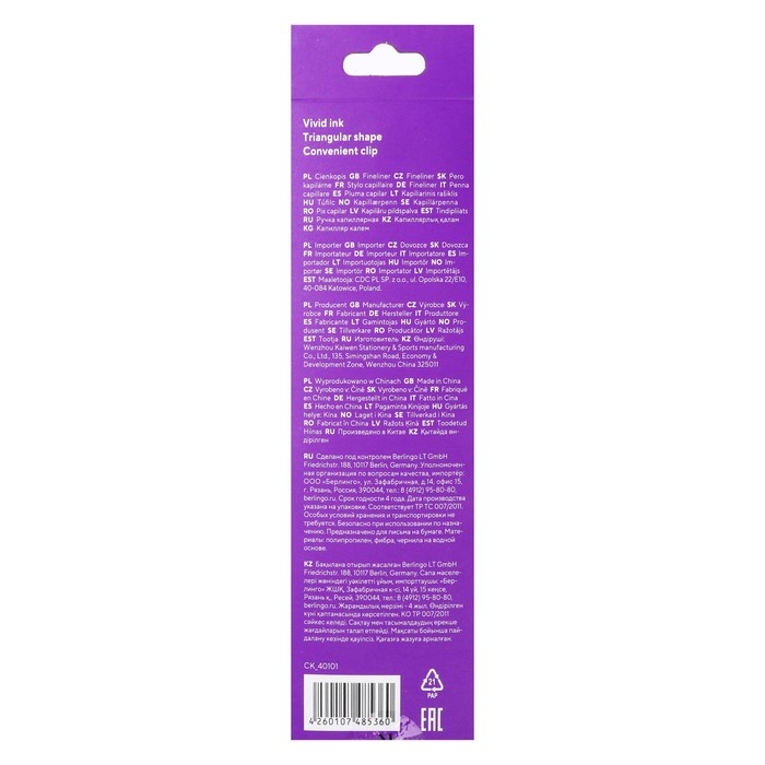 Ручка капиллярная Erich Krause F-15, узел 0.6 мм, чернила чёрные, длина линии письма 400 метров