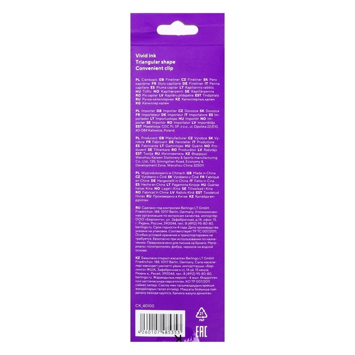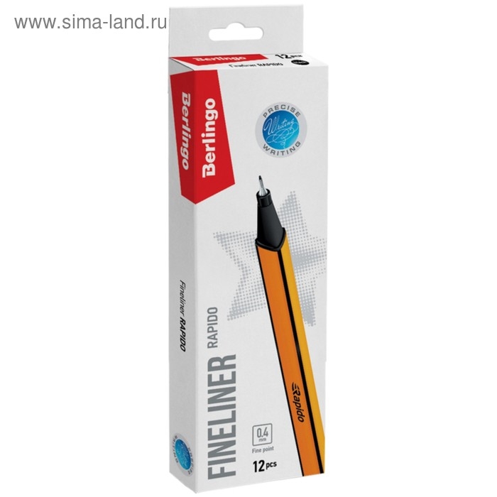 Капиллярная ручка Berlingo Rapido обеспечивает особо легкое, мягкое и точное письмо, идеально подходит для рисования и черчения. Благодаря эргономичному трёхгранному корпусу максимально комфортна в использовании. Металлическое обжатие наконечника дает возможность работать с линейками и трафаретами. Высокое качество износостойкого пишущего наконечника и большой запас чернил значительно увеличивают срок службы ручки до 48 месяцев. Также, ручка долгое время не утрачивает пишущих свойств без колпачка. Чернила на водной основе. Цвет колпачка соответствует цвету чернил. Диаметр пишущего узла 0,4 мм обеспечивает мягкость письма и насыщенность цвета. Толщина линии письма составляет 0,4 мм, длина линии письма - 1000 метров. Цвет чернил: чёрный, Толщина линии письма: 0,4 мм, Длина письма: 1000 м, Цвет корпуса: оранжевый.