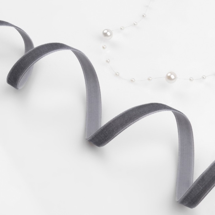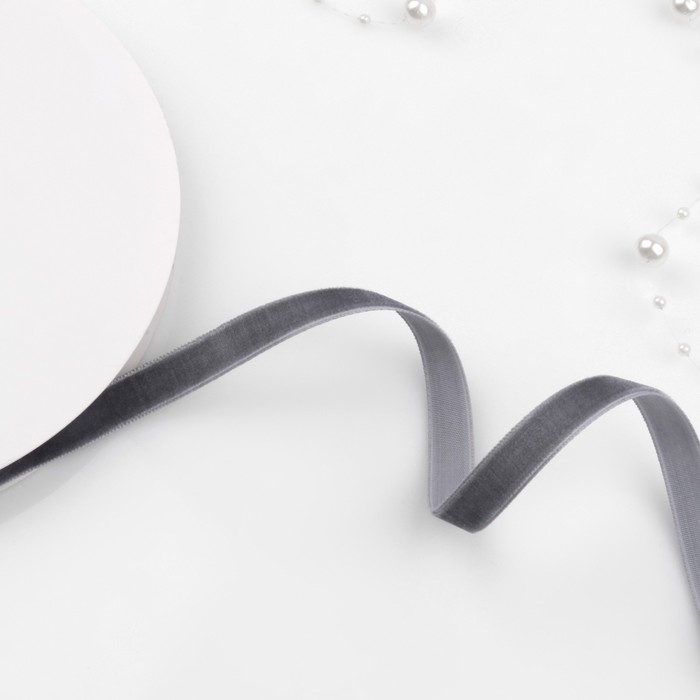 Лента бархатная, 10 мм, 18 ± 1 м, цвет серый №63