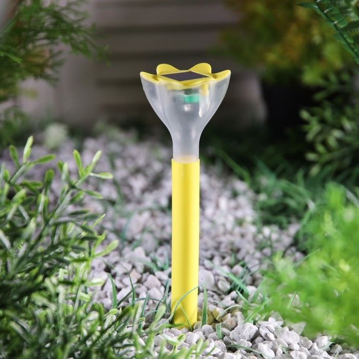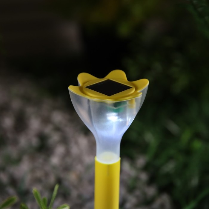 Садовый светильник на солнечной батарее «Цветок жёлтый», 6 × 29 × 6 см, 1 LED, свечение белое