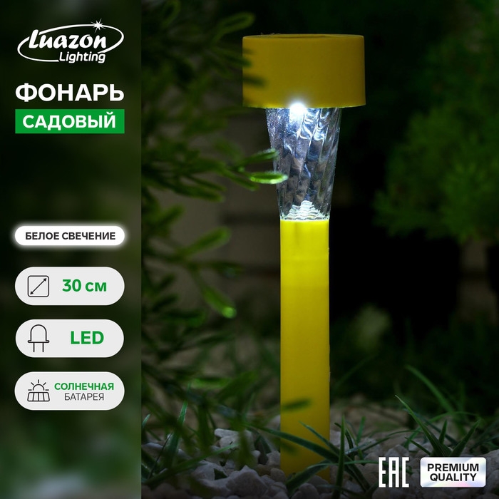 Садовый светильник на солнечной батарее «Жёлтая трапеция», 4.5 × 30 × 4.5 см, 1 LED, свечение белое