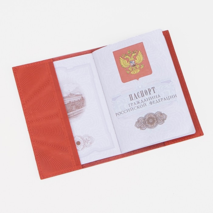Обложка для паспорта, герб+ кремль, цвет красный