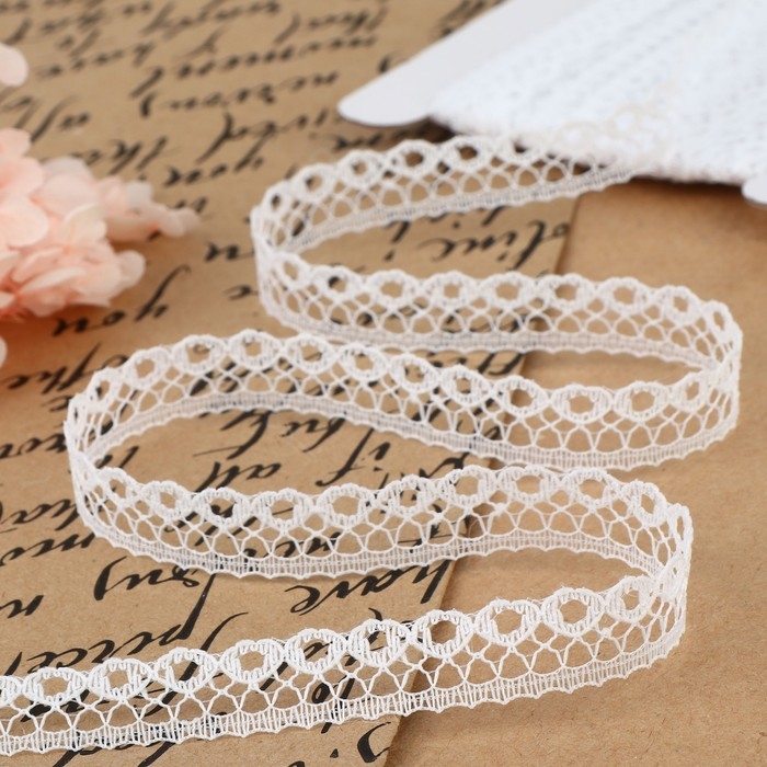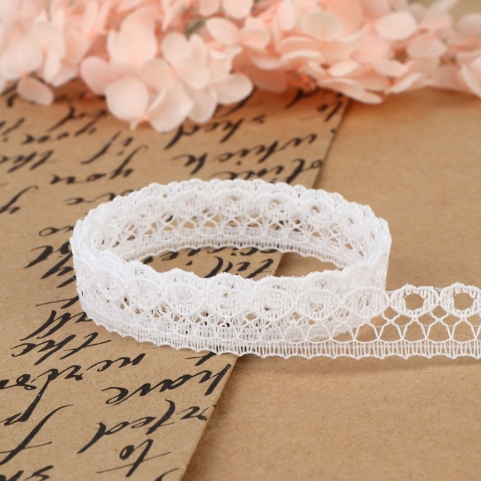 Кружево гипюровое, 15 мм × 14 ± 1 м, цвет белый