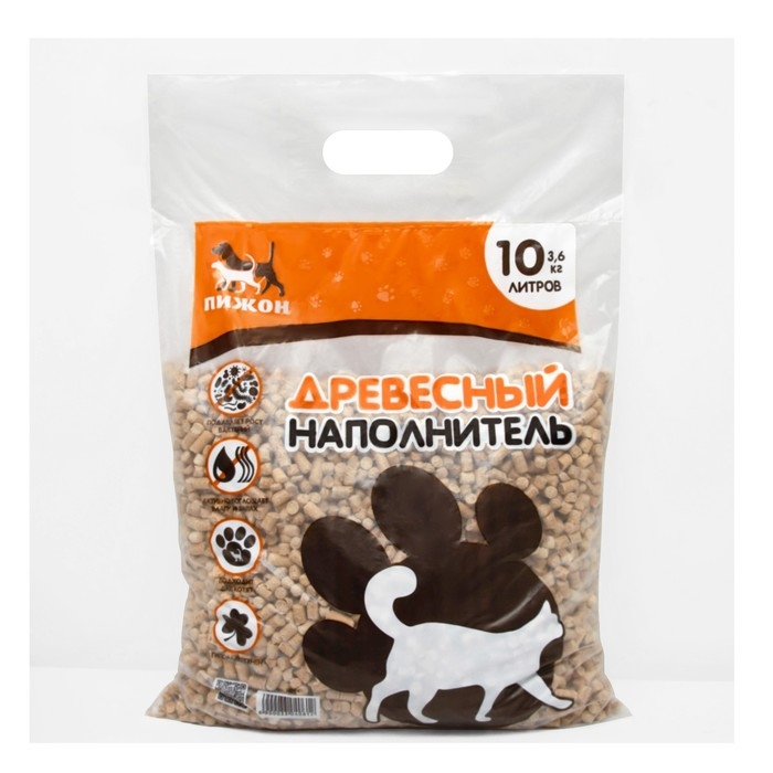 Древесный наполнитель отлично впитывает жидкость и запахи, что делает его идеальным выбором для кошачьего туалета. Вам не придется беспокоиться о неприятных запахах в вашем доме.