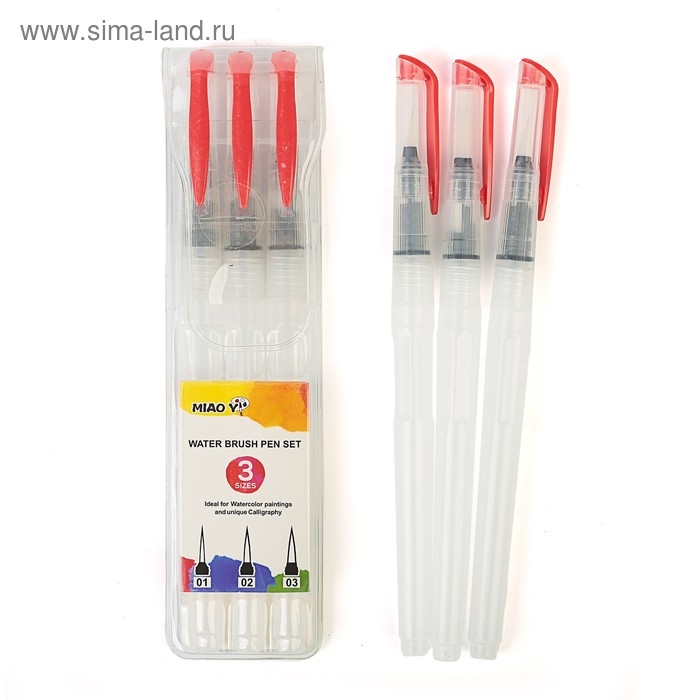 Набор кистей каллиграфических, синтетика круглая, 3 штуки (№ 1, 2, 3), с резервуаром
