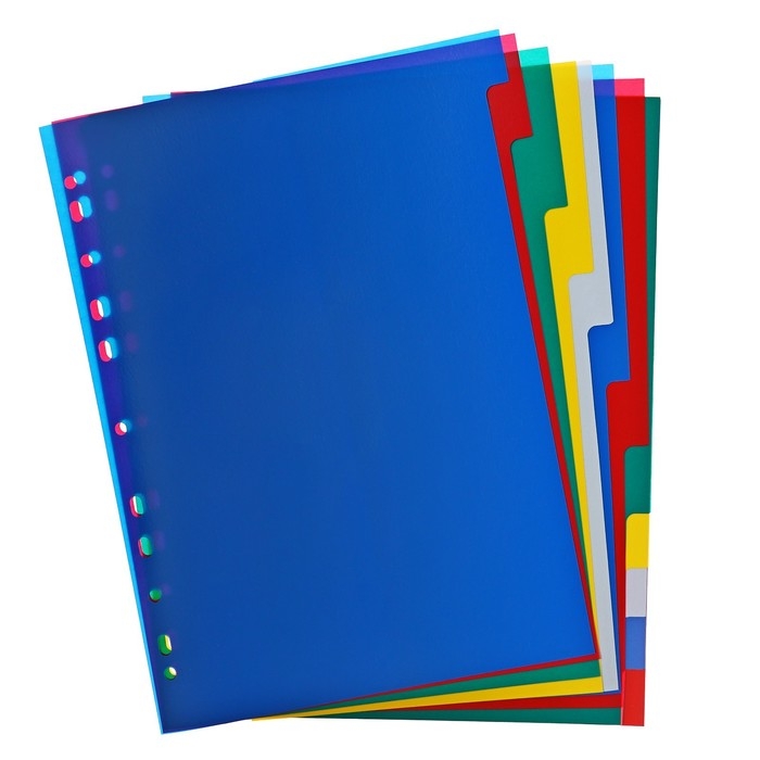 Разделители помогут Вам комфортно сортировать, архивировать и систематизировать любые документы внутри папок разного вида. Они выполнены из прочного пластика и имеют универсальную перфорацию для подшивки в папки.