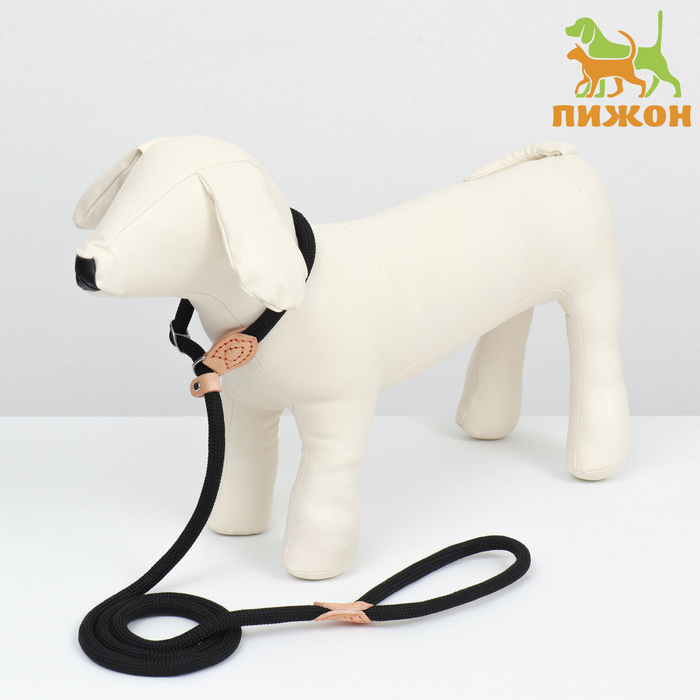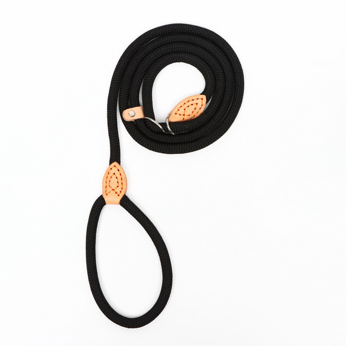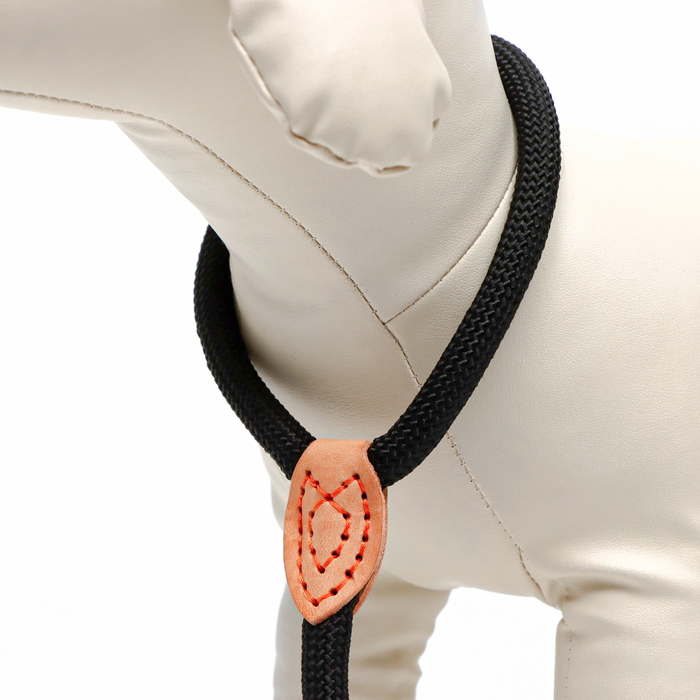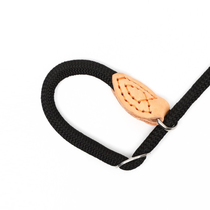 Поводок-удавка 150 х 1 см, полиэстер и натуральная кожа, чёрный