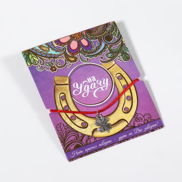 Браслет-оберег «Красная нить» на удачу, клевер, цвет серебро, d=8 см