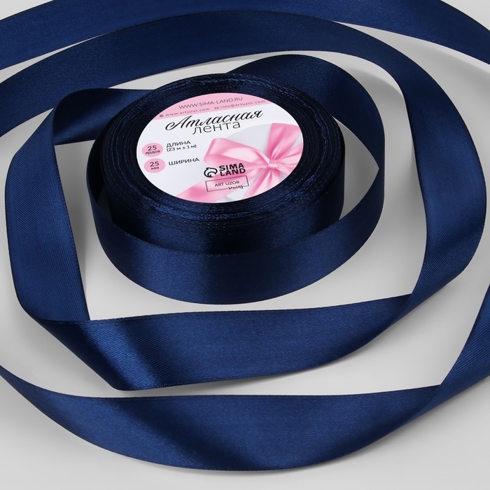 Лента атласная, 25 мм × 23 ± 1 м, цвет тёмно-синий №38