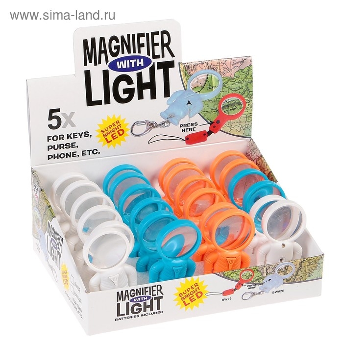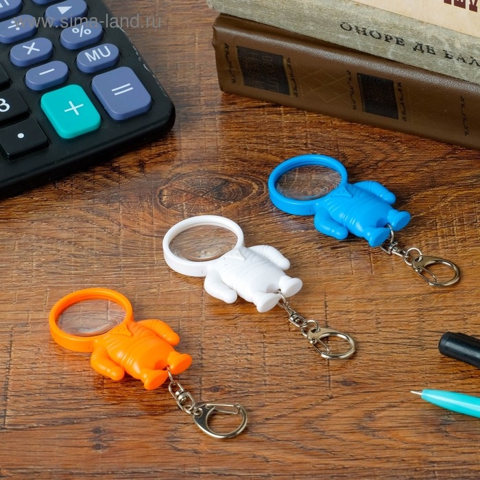 Лупа-брелок, 5х, d=2,5см, "Космонавт" с фонариком, шоубокс
