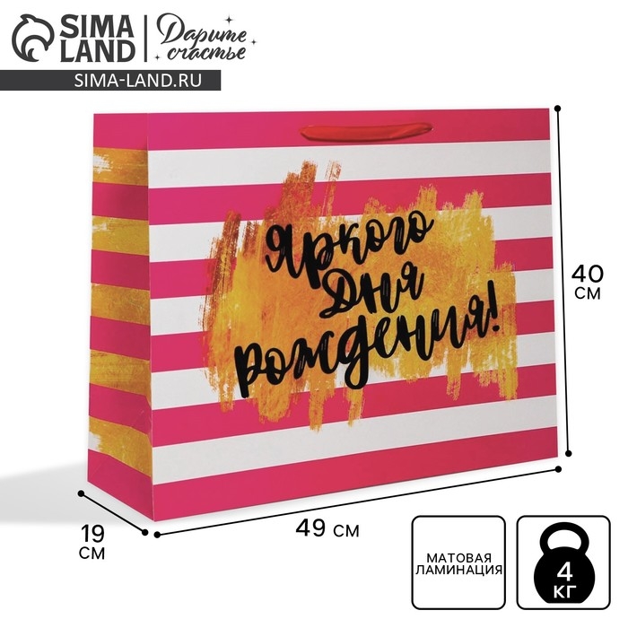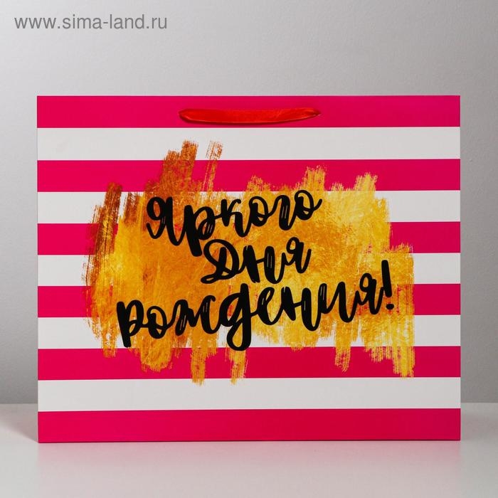 Пакет подарочный ламинированный горизонтальный, упаковка, «Яркого дня рождения!», XL 40 х 49 х 19 см
