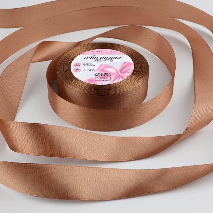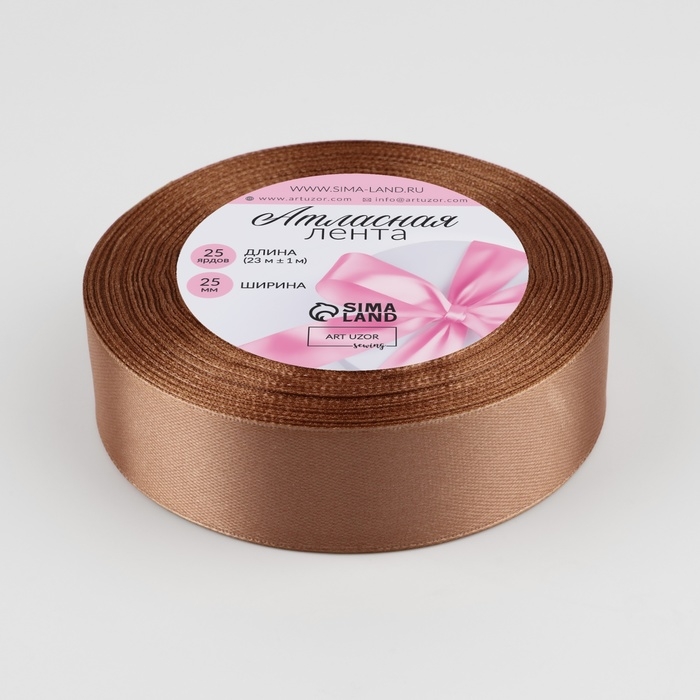 Лента атласная, 25 мм × 23 ± 1 м, цвет светло-коричневый №136