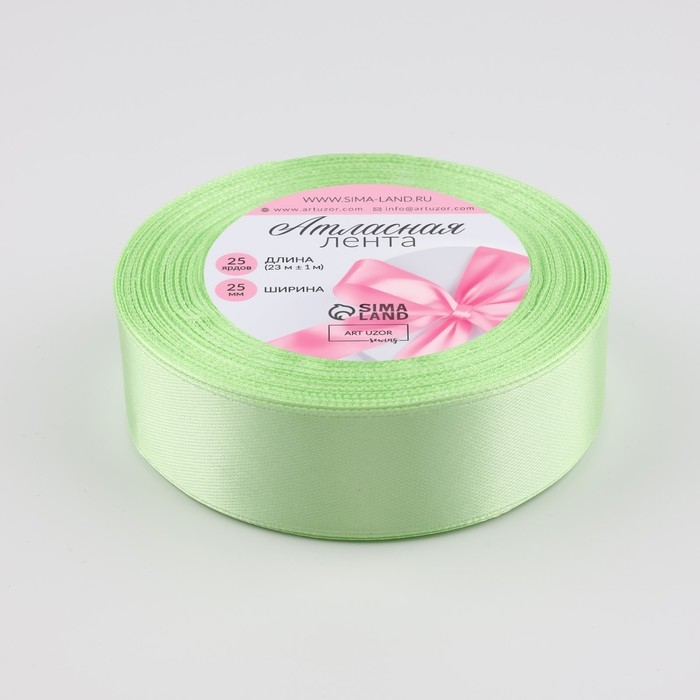 Лента атласная, 25 мм × 23 ± 1 м, цвет фисташковый №65