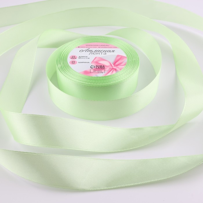Лента атласная, 25 мм × 23 ± 1 м, цвет светло-зелёный №80