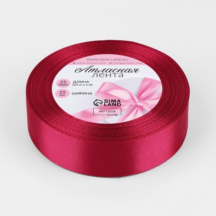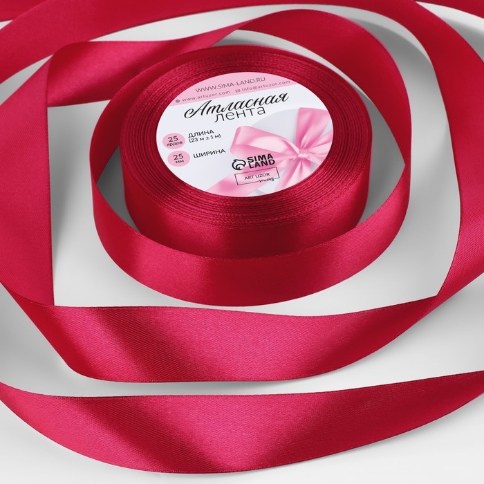 Лента атласная, 25 мм × 23 ± 1 м, цвет малиновый №72