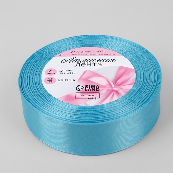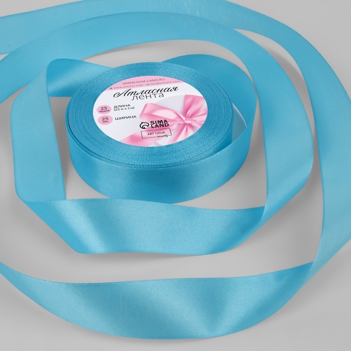 Лента атласная, 25 мм × 23 ± 1 м, цвет ярко-голубой №20