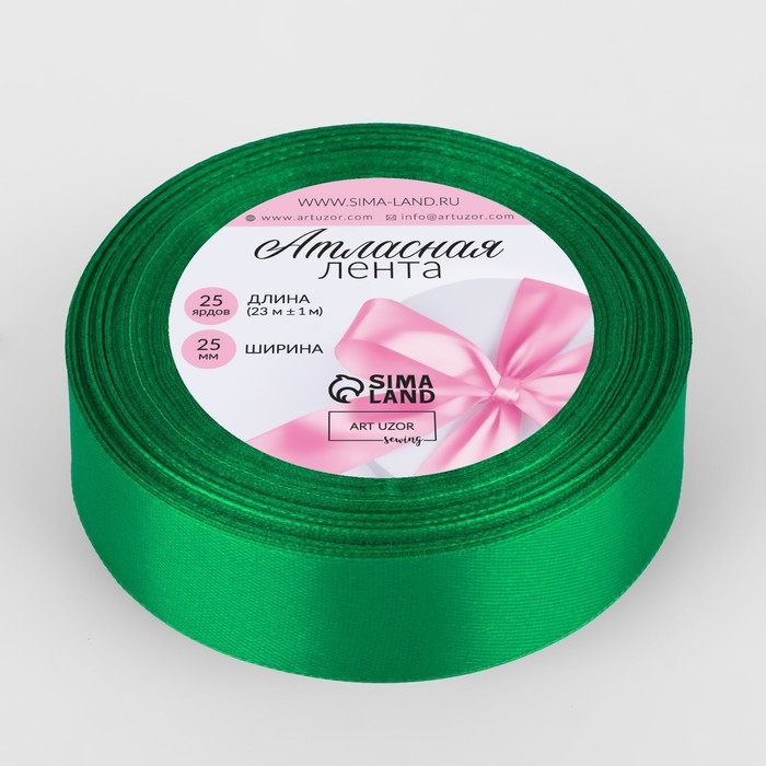 Лента атласная, 25 мм × 23 ± 1 м, цвет зелёный №19