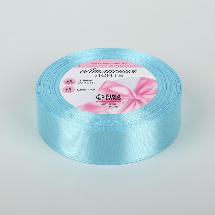 Лента атласная, 25 мм × 23 ± 1 м, цвет голубой №211