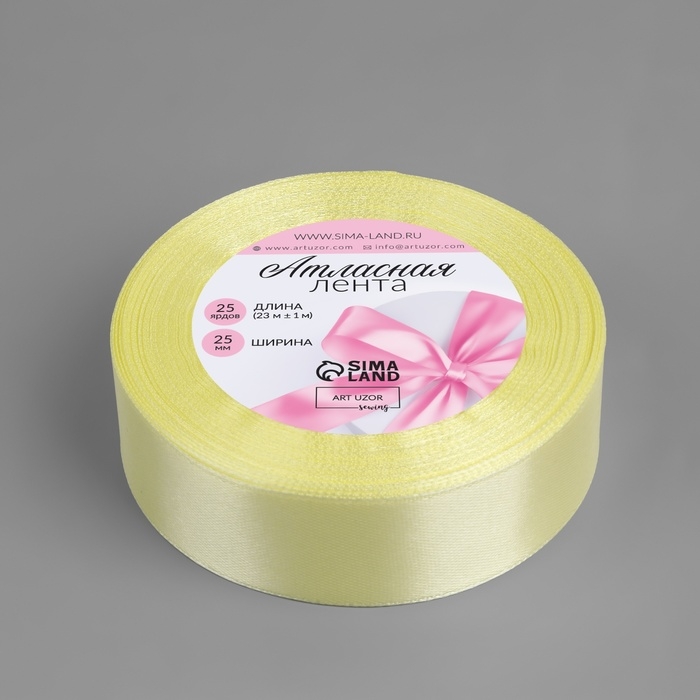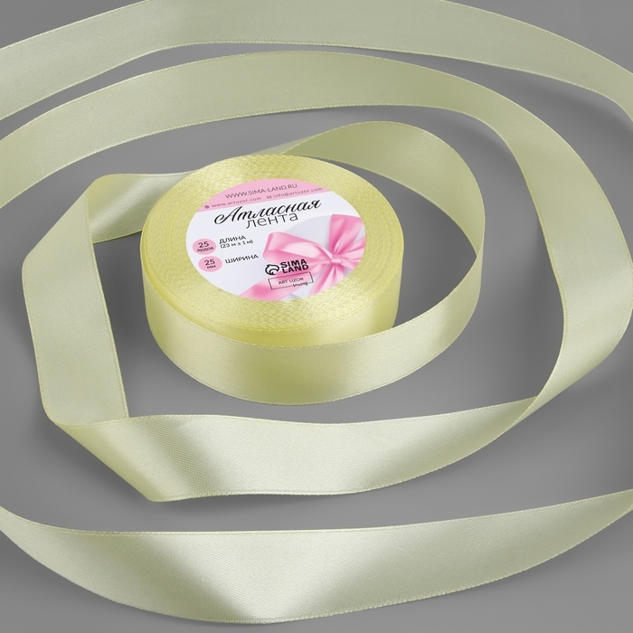 Лента атласная, 25 мм × 23 ± 1 м, цвет ярко-ванильный №81