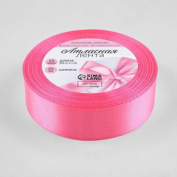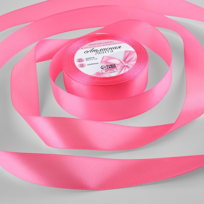 Лента атласная, 25 мм × 23 ± 1 м, цвет насыщенный розовый №05