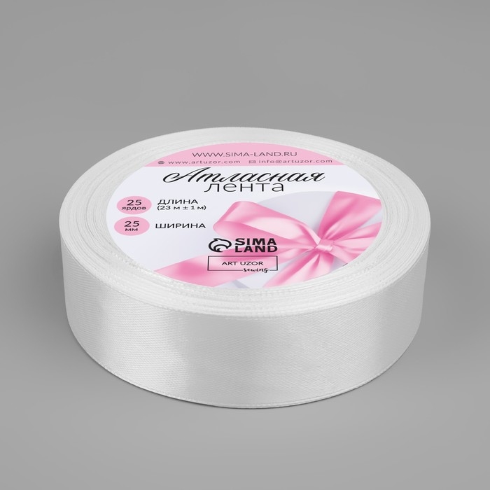 Лента атласная, 25 мм × 23 ± 1 м, цвет белый №01