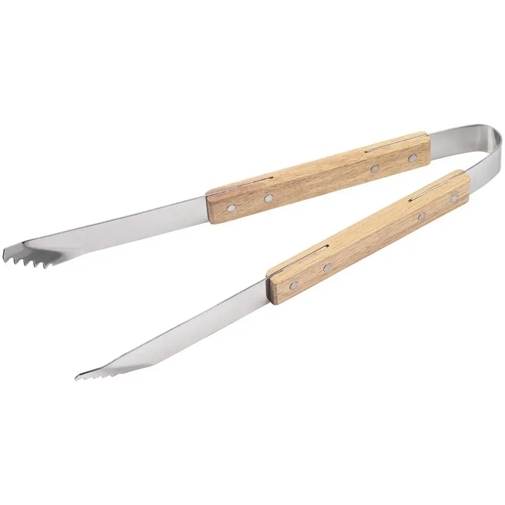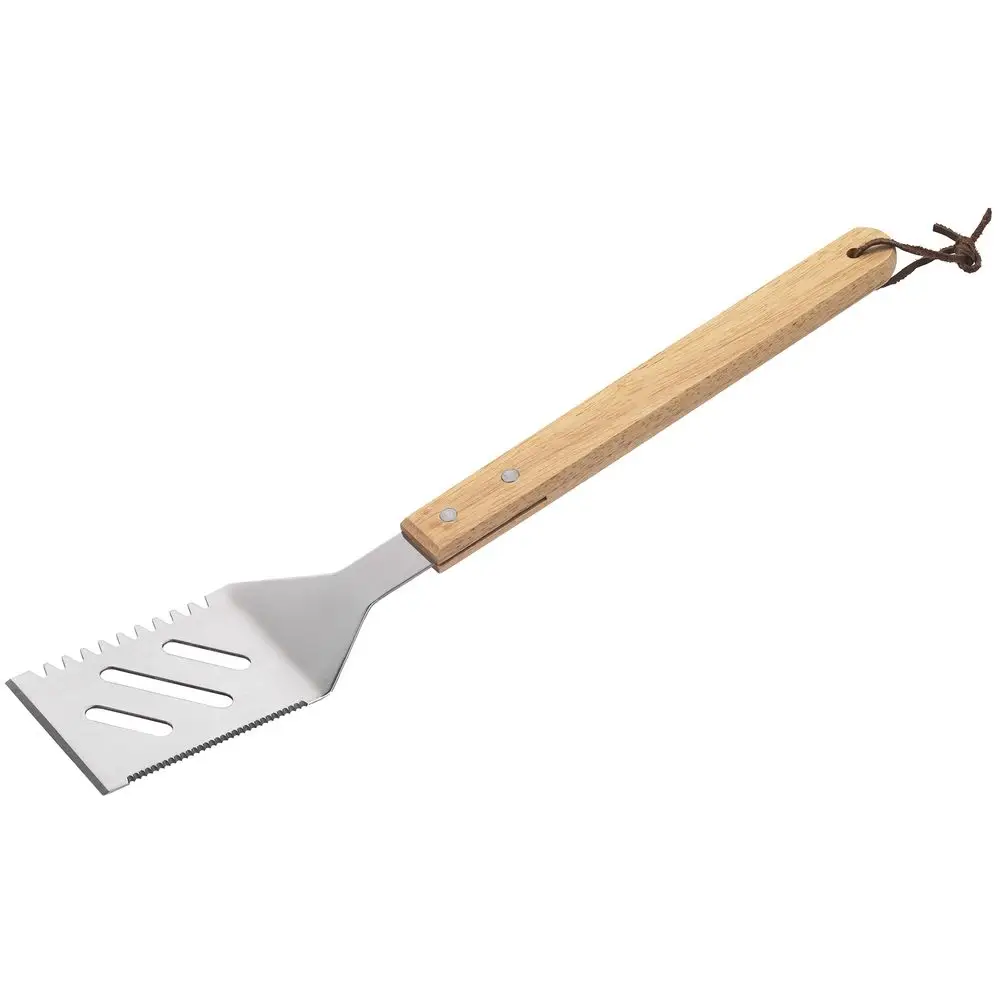 С надежными инструментами для барбекю No Misteak не грозит столкнуться с какой-либо ошибкой в приготовлении мяса — с ними удобно управляться, а значит, и еда получается вкуснее. Деревянные ручки не нагреваются — и на них хорошо ложится гравировка, а прочный полированный металл легко моется и не деформируется при работе с горячими продуктами и поверхностями.В набор входят: щипцы, вилка и лопатка.
