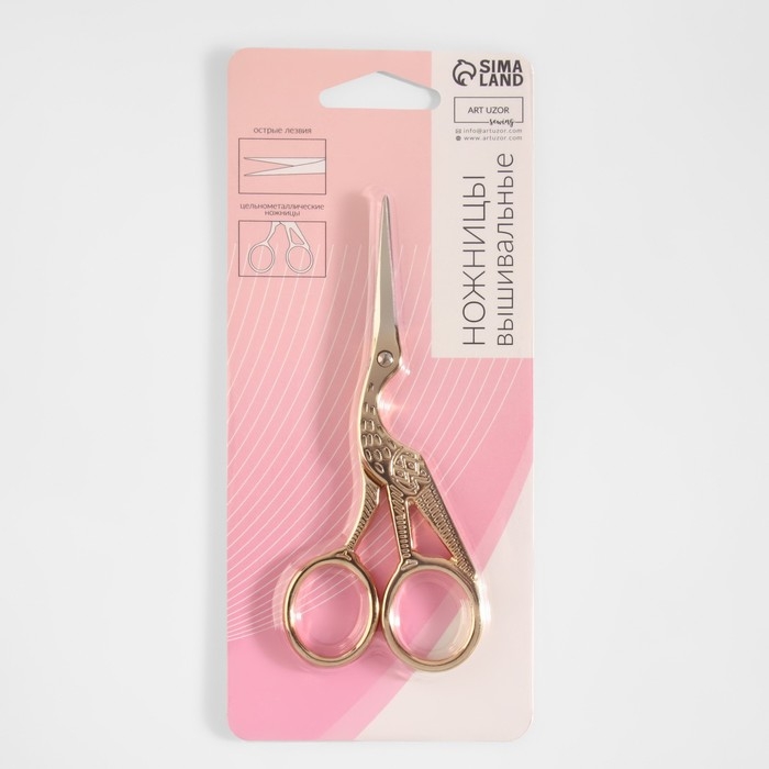 Ножницы для рукоделия «Цапельки», скошенное лезвие, 4,5", 11,4 см, цвет золотой