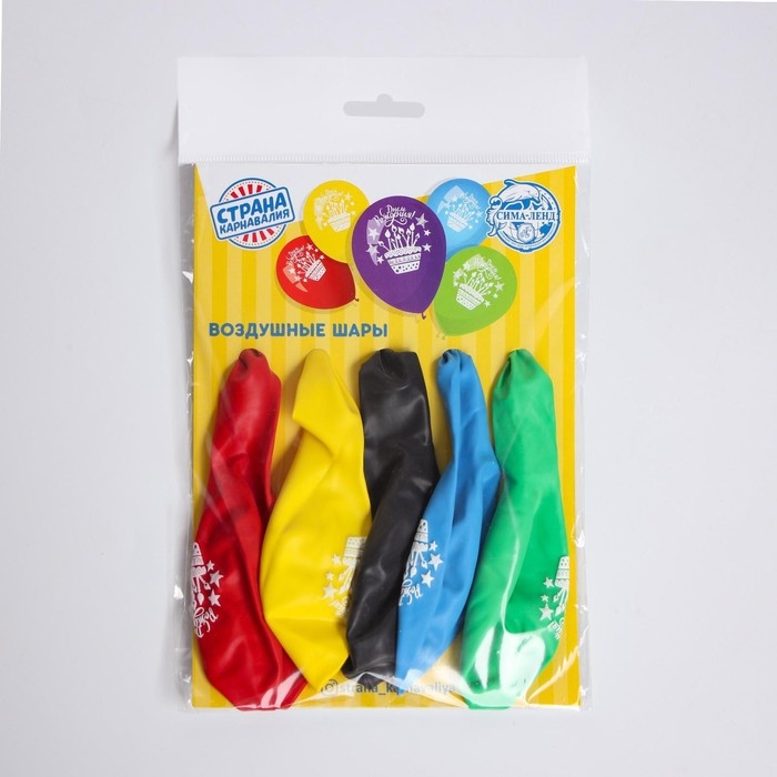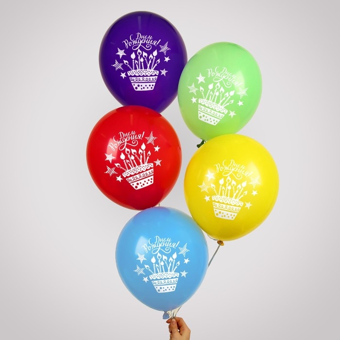 Воздушный шар латексный 12" «День рождения», праздн. тематика, пастель, 5 шт.