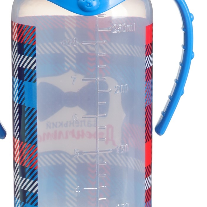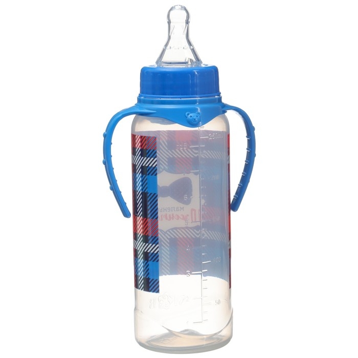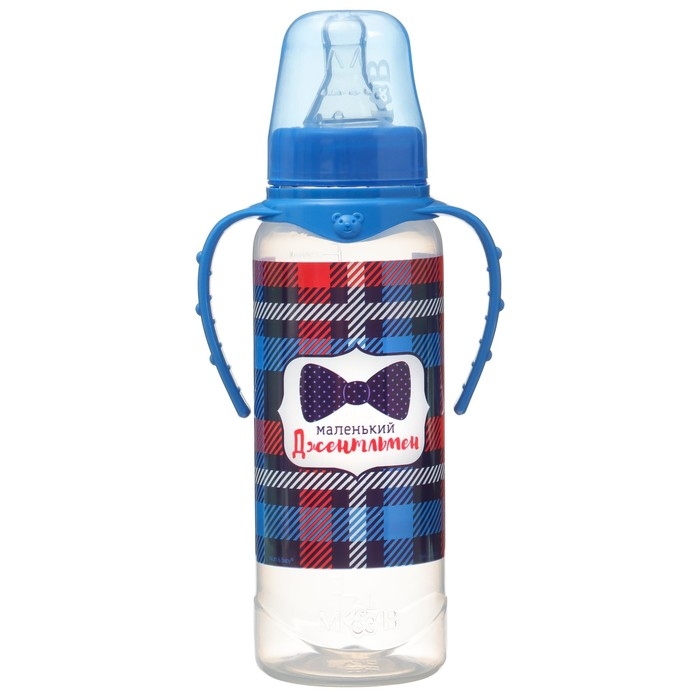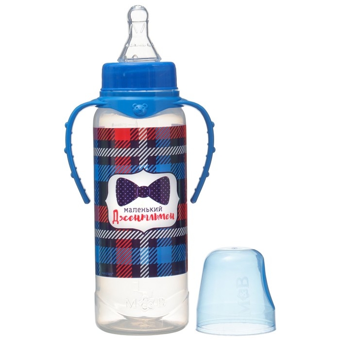 Бутылочка для кормления «Маленький джентльмен», классическое горло, с ручками, 250 мл., от 0 мес., цвет синий