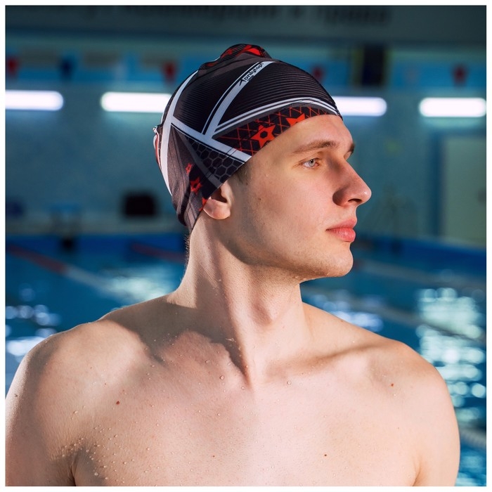 Шапочка для плавания взрослая ONLYTOP «Мозаика», тканевая, обхват 54-60 см
