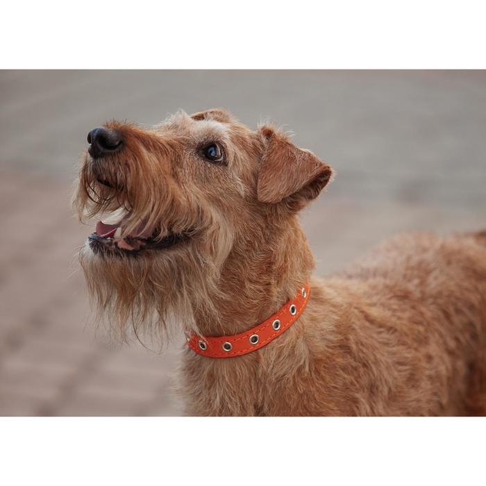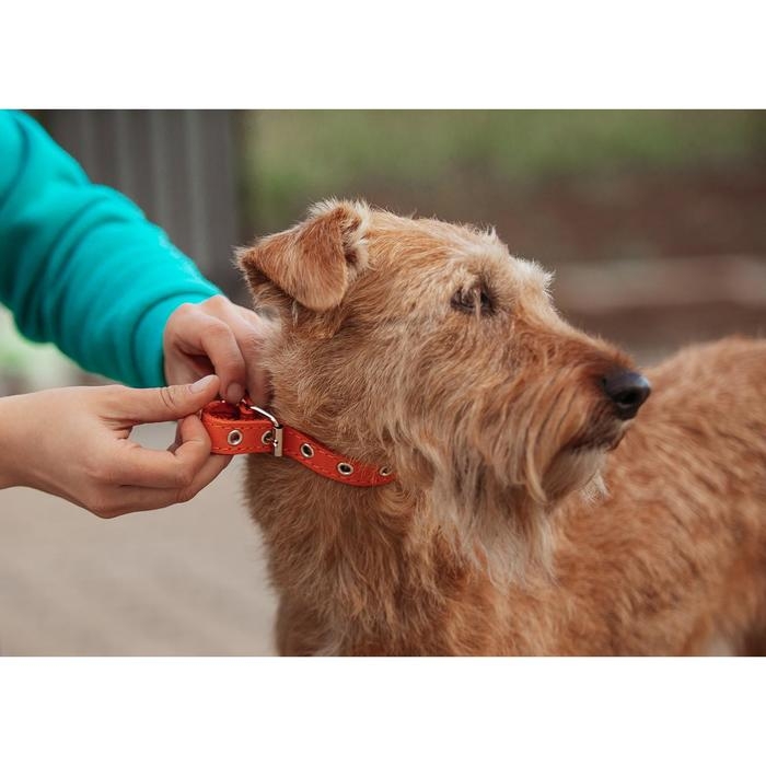 Ошейник кожаный однослойный безразмерный, 45 х 2 см, ОШ 18-39 см, красный