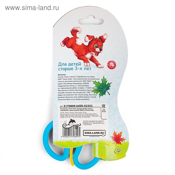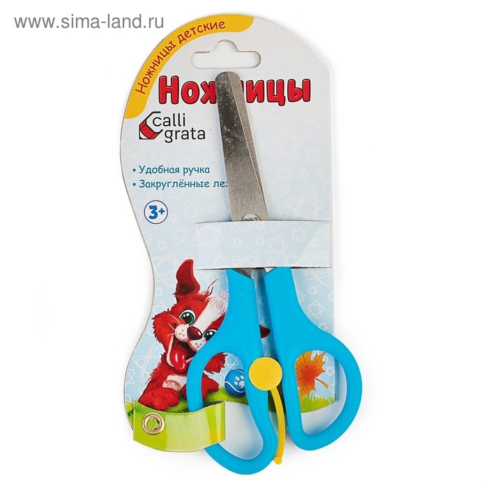 Ножницы 13 см, пластиковые ручки, закруглённые концы, фиксатор, блистер, корпус МИКС