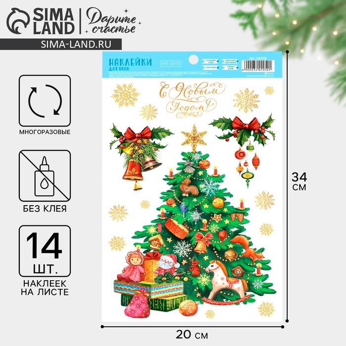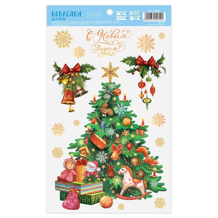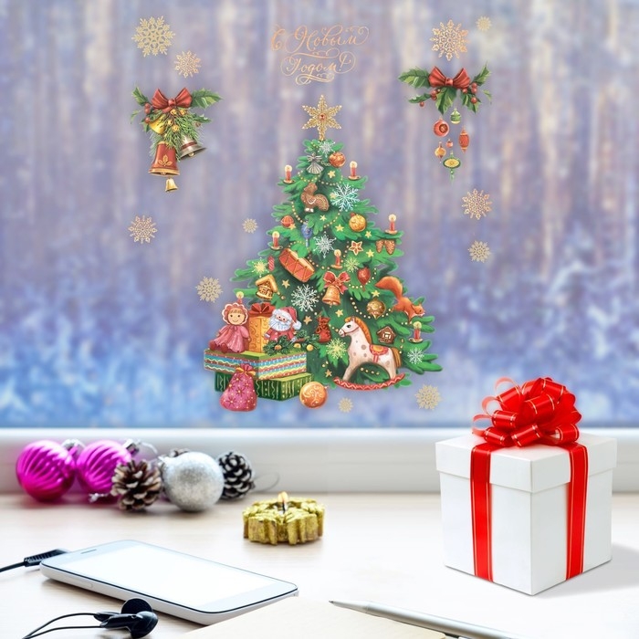 Наклейки новогодние на окна «Новогодняя ёлочка», многоразовые, 20 х 34 см, Новый год