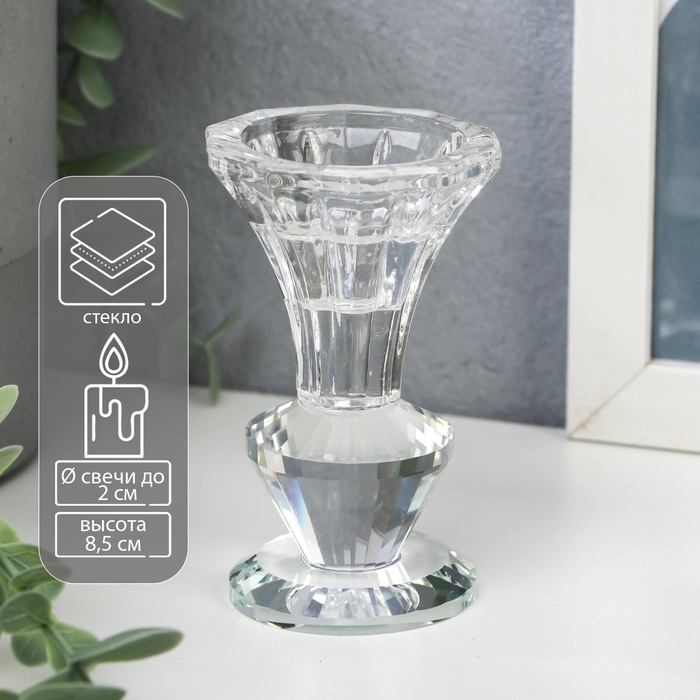 Подсвечник стекло на 1 свечу "Вазон с хрусталиком" 8,5х6х6 см