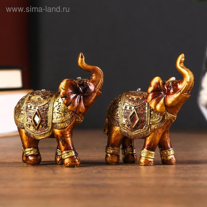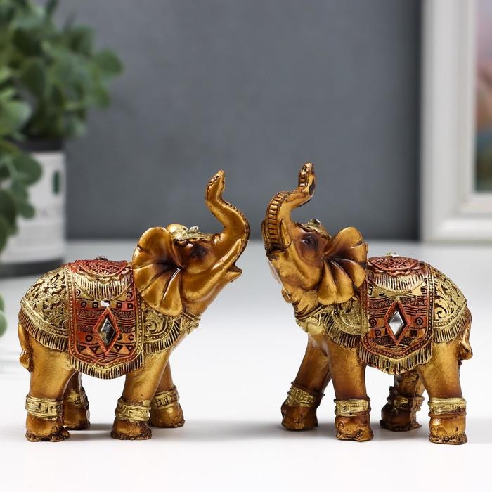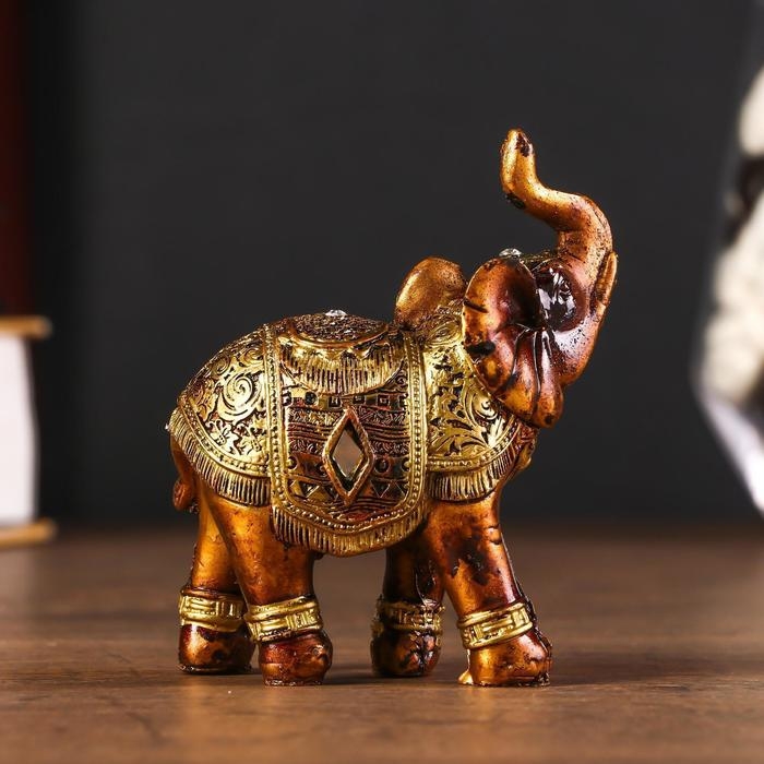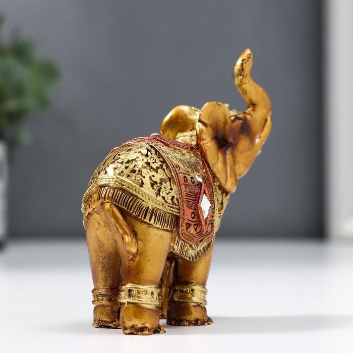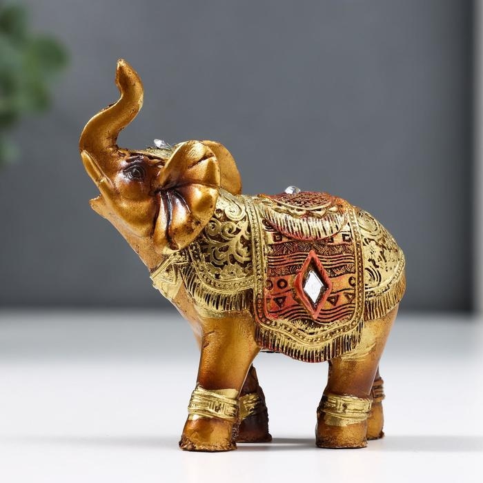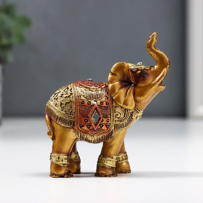 Сувенир полистоун "Африканский слон в золотой, ажурной попоне" МИКС 8,5х7х3 см