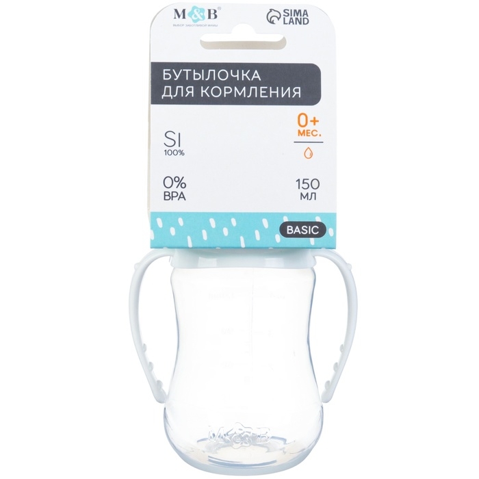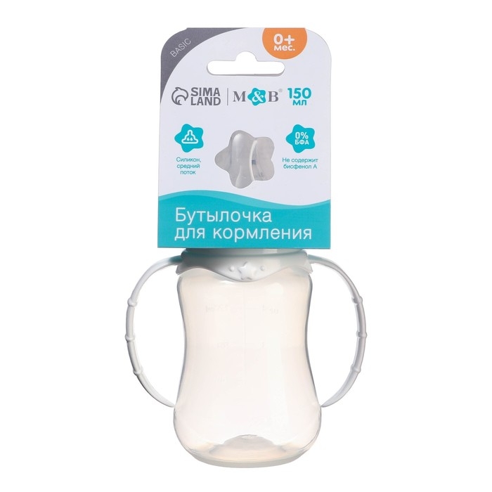 Бутылочка для кормления, классическое горло, приталенная, с ручками, 150 мл., от 0 мес., цвет белый