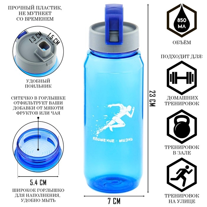 Бутылка для воды, 850 мл, "Заряд энергии", 23 х 7 см, синяя
