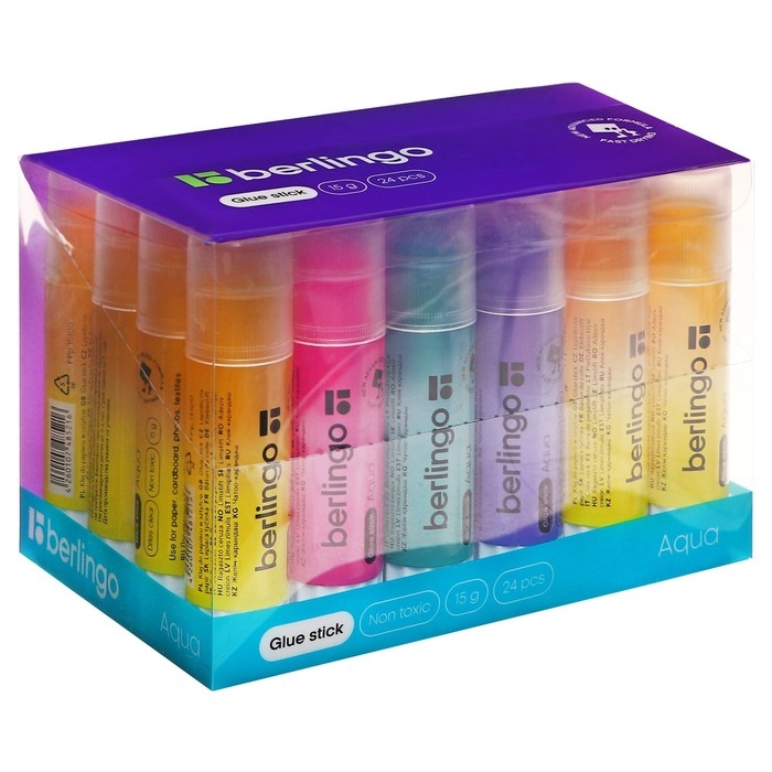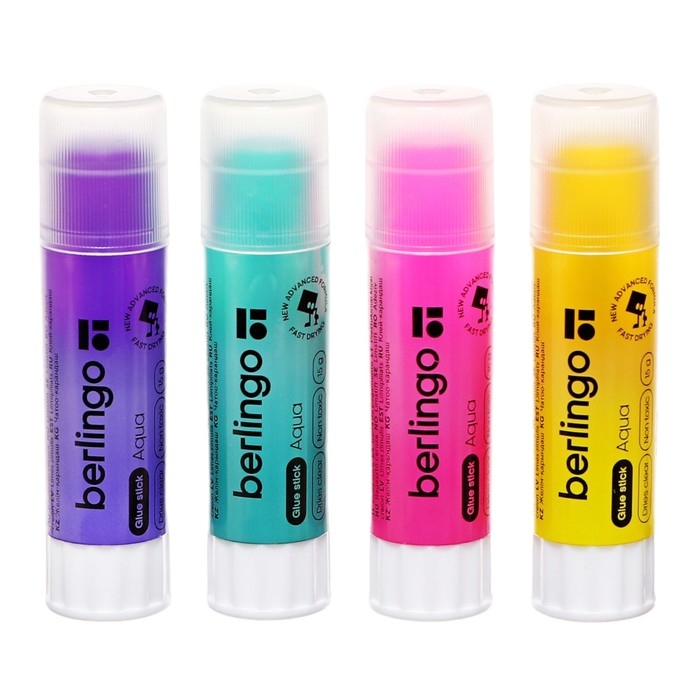 Клей-карандаш PVP 15 г Berlingo Aqua, цветной