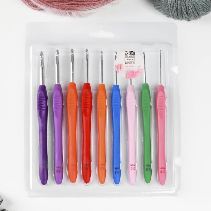 Набор крючков для вязания, d = 2-6 мм, 16 см, 9 шт, цвет разноцветный