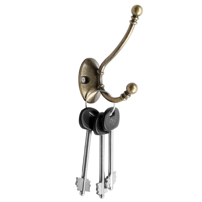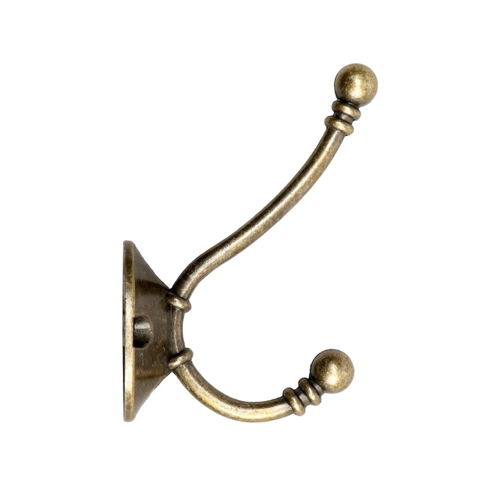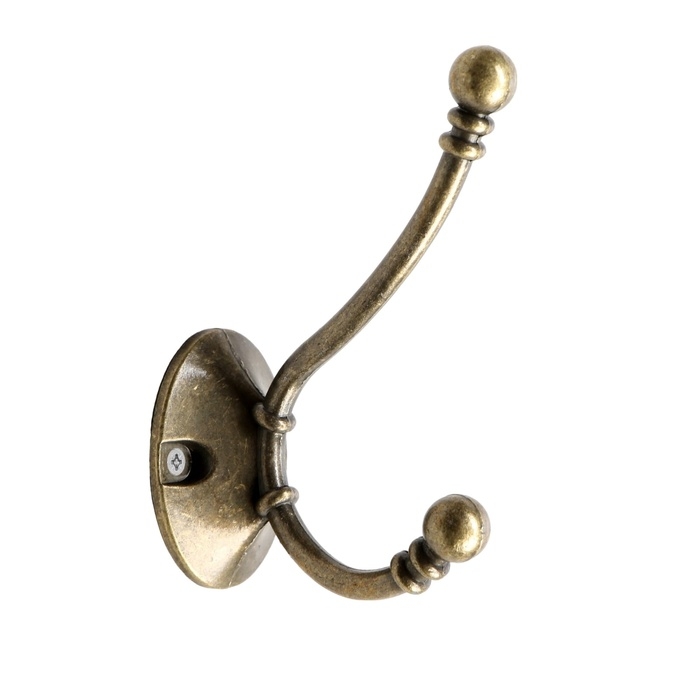 Крючок мебельный ТУНДРА TKD020, двухрожковый, бронза, 50 шт