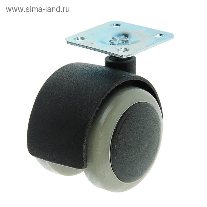 Колесо мебельное, d=50 мм, на площадке, c мягким ходом, без тормоза, серое