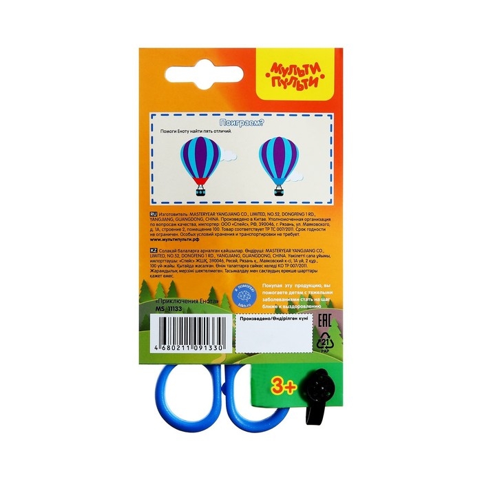 Ножницы детские для левшей 12,5 см Мульти-Пульти "Приключения Енота", европодвес, МИКС