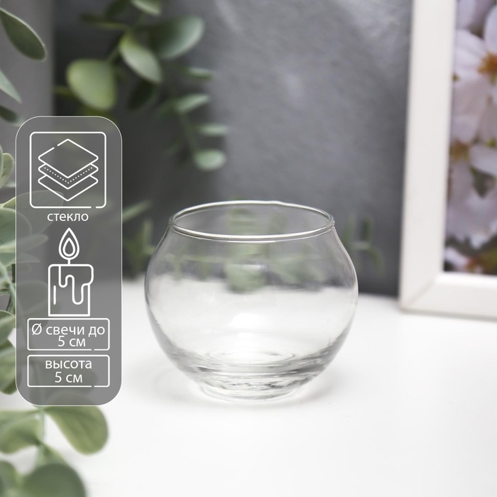 Подсвечник стекло 1 свеча "Прозрачный шар" 5х6,5х6,5 см