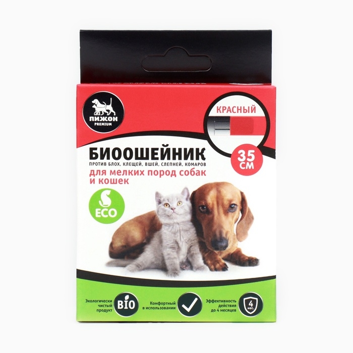 Биоошейник от паразитов "Пижон Premium" для кошек и собак, красный, 35 см