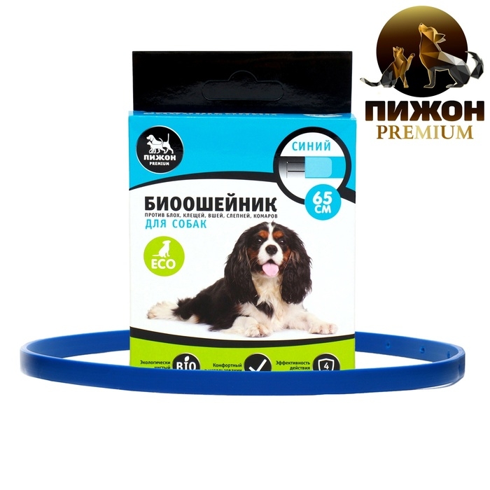 Биоошейник от паразитов "Пижон Premium" для собак, синий, 65 см