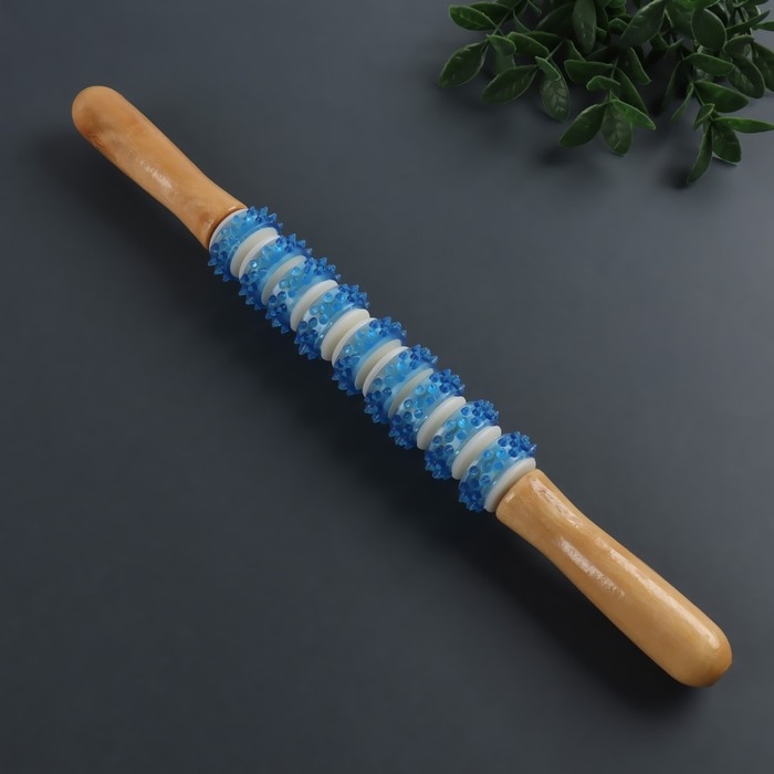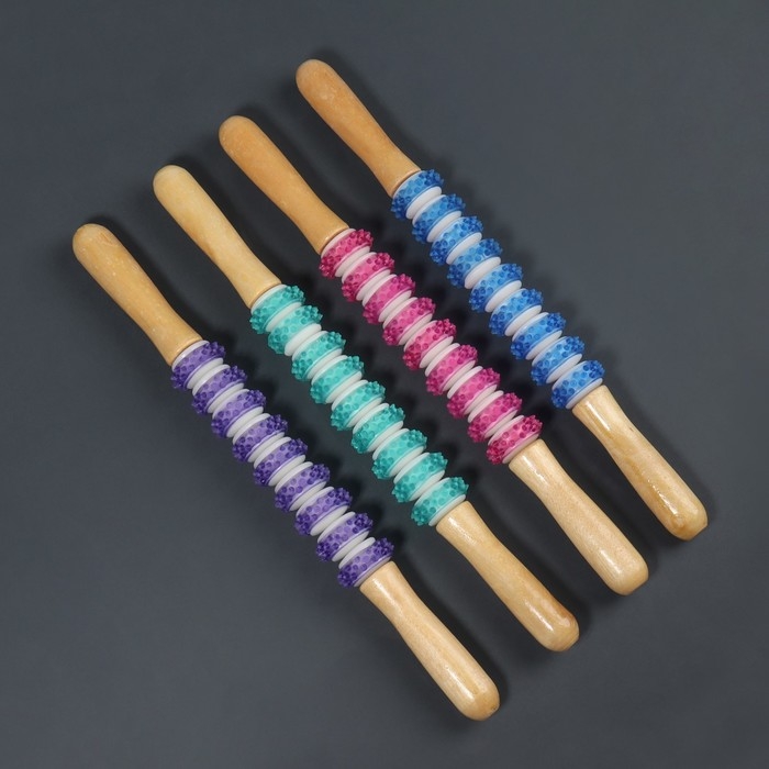 Массажёр «Скалка», универсальный, 37,5 × 4 см, 9 колёс с шипами, цвет МИКС