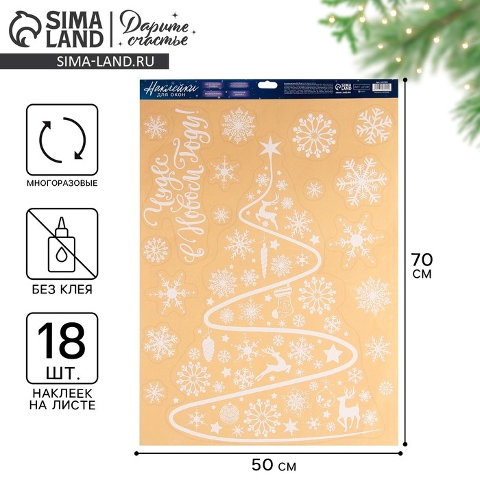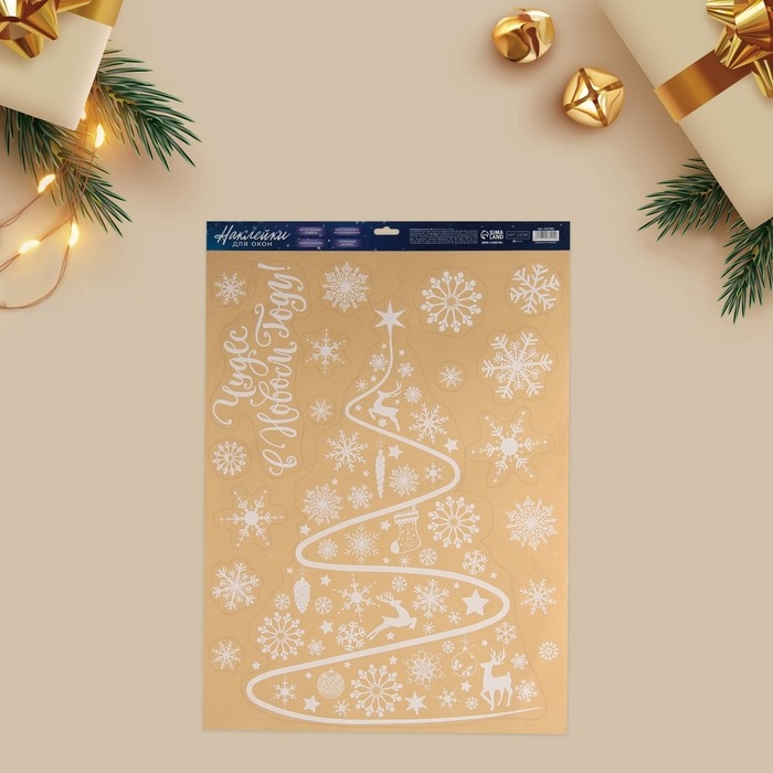 Наклейки новогодние на окна «Новогодняя елочка» , многоразовые, 50 х 70 см, Новый год