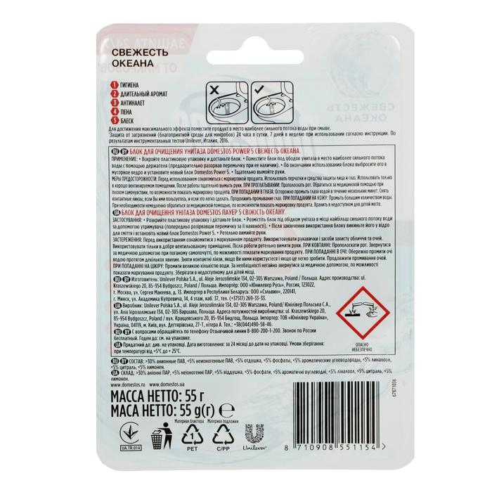 Блок для очищения унитаза Domestos Power 5 «Океан», 55 г